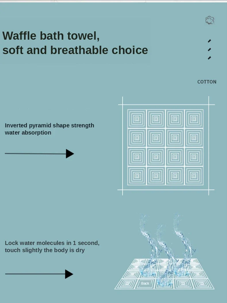 100% Cotton Bath Towel Set for Adult Child Super Absorbent Soft Bathroom Waffle Towel Solid Color Kitchen Clean Towels