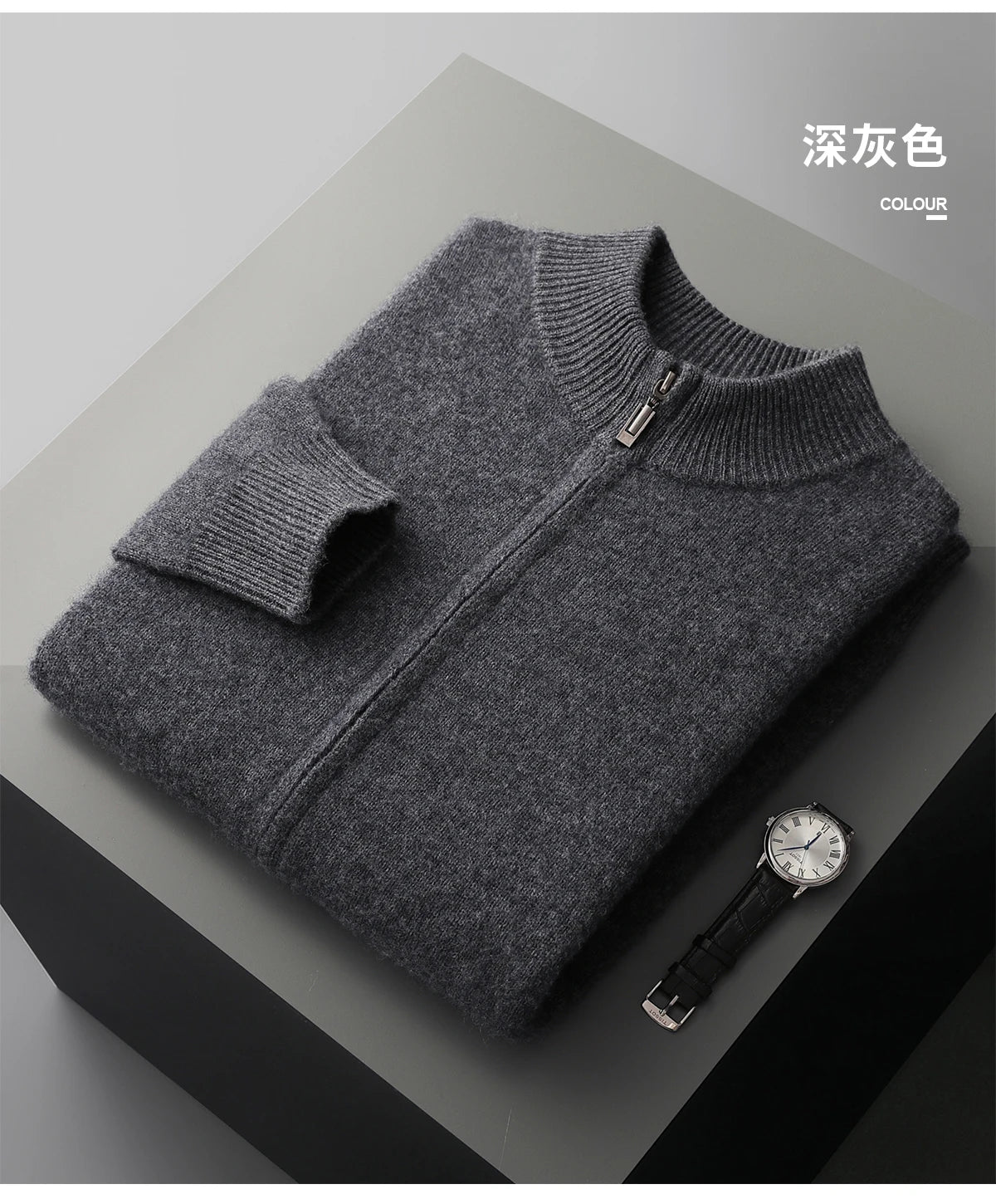 100% Merino Wool Two-piece Suit for Men Autumn Winter Knitting Zipper Cardigan and Slim-fit Pants Warm Thickened Clothing Sets