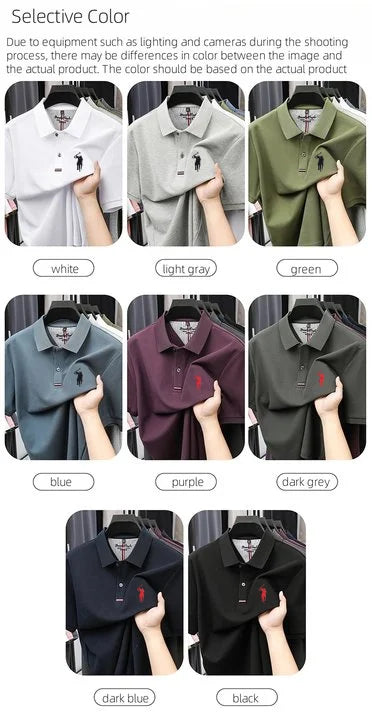 100% pure cotton men's short sleevedsolid color T-shirt summer new luxury brand business casual exquisite embroidery polo shirt