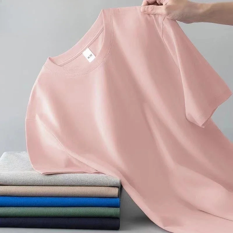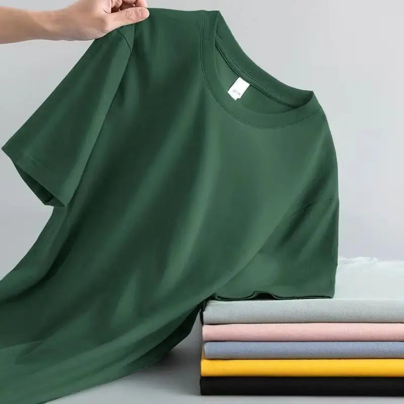 100% Pure Cotton Round Neck Short Sleeved T-shirt for Men and Women's New Summer Versatile Loose Solid Color Men's T-shirt