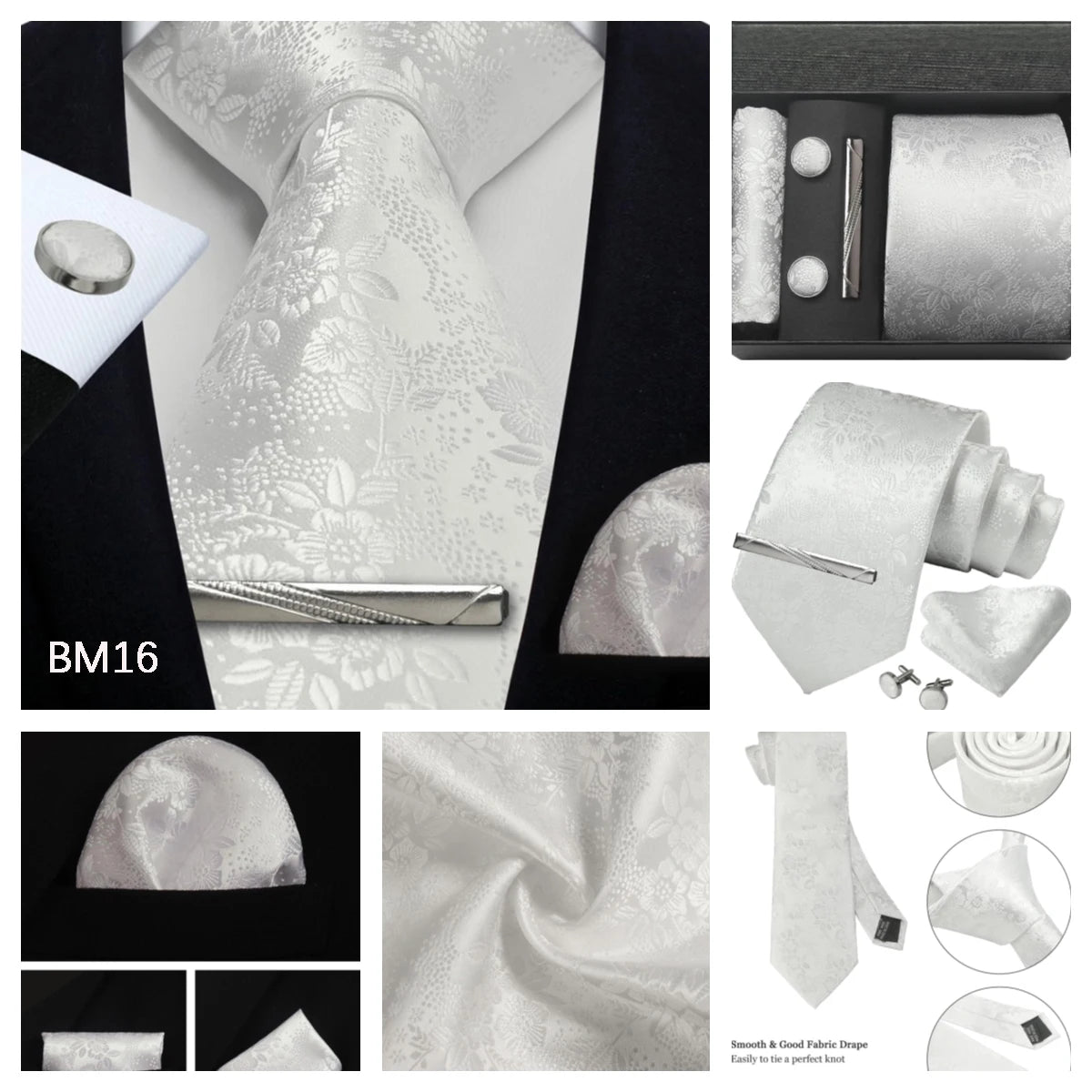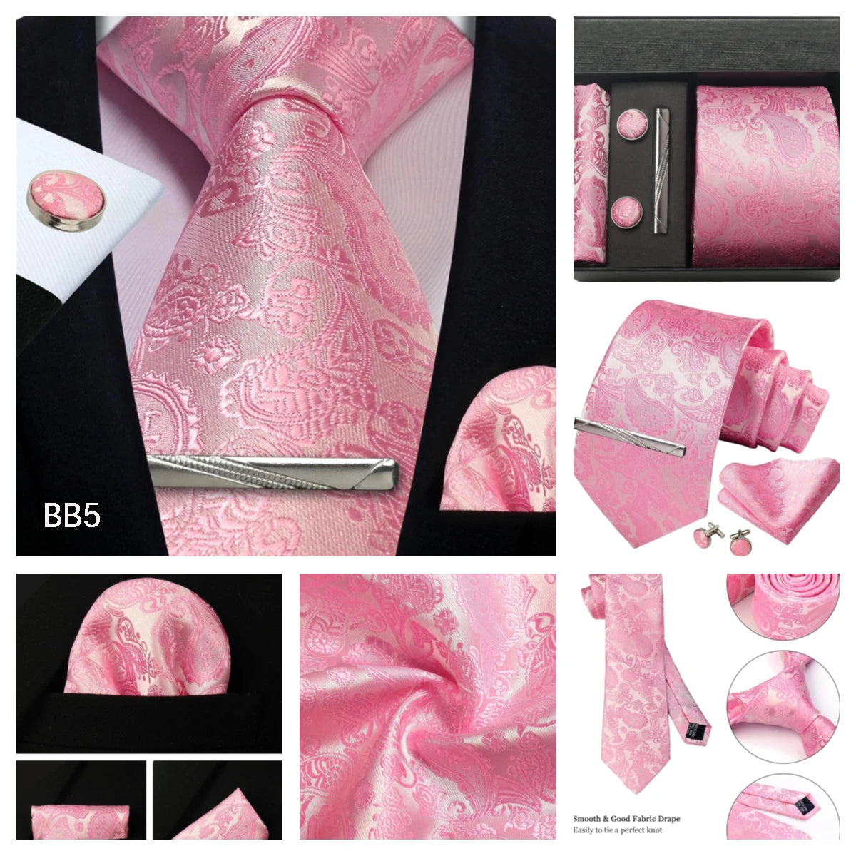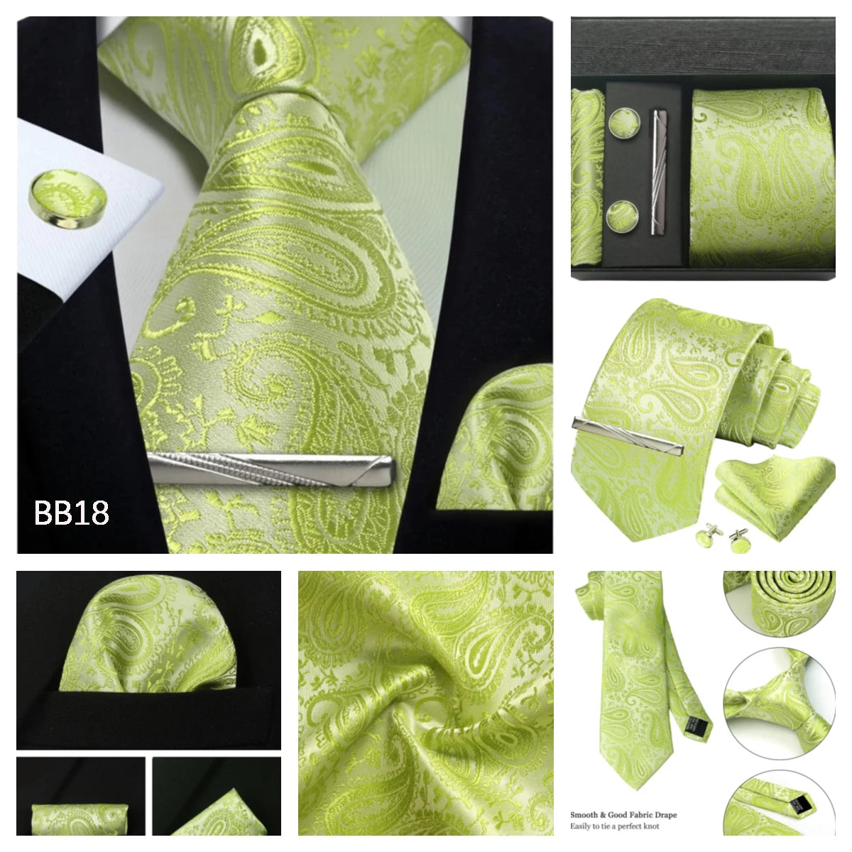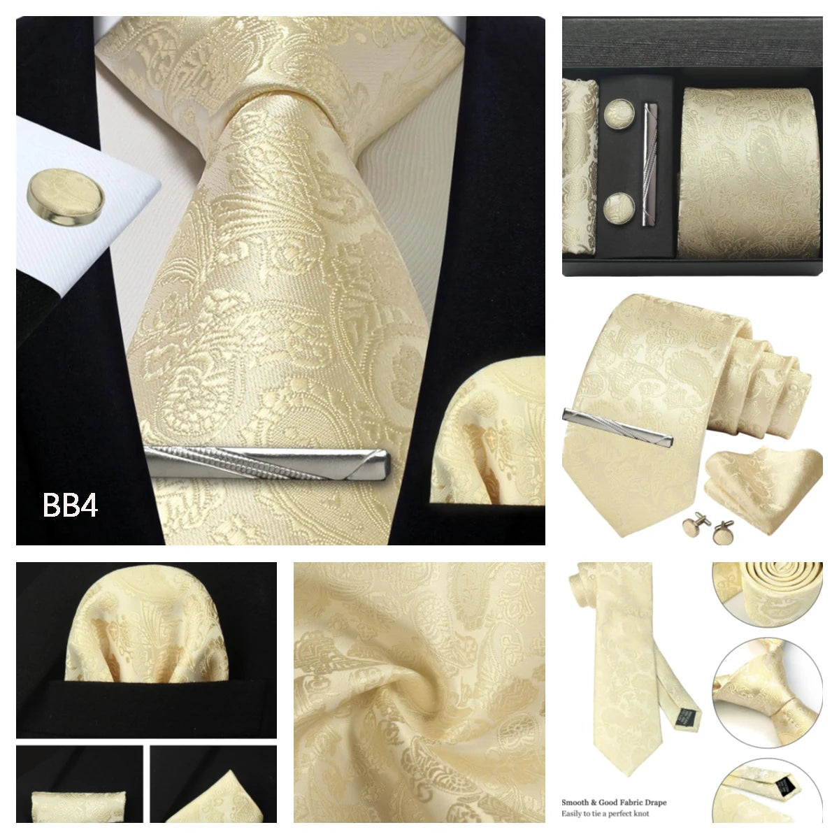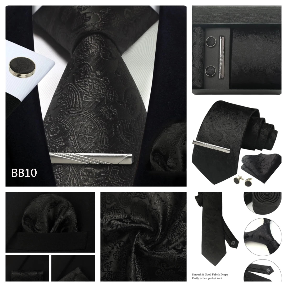 Tie set: Men tie & Pocket square & Cufflinks &Tie Clip & Gift box