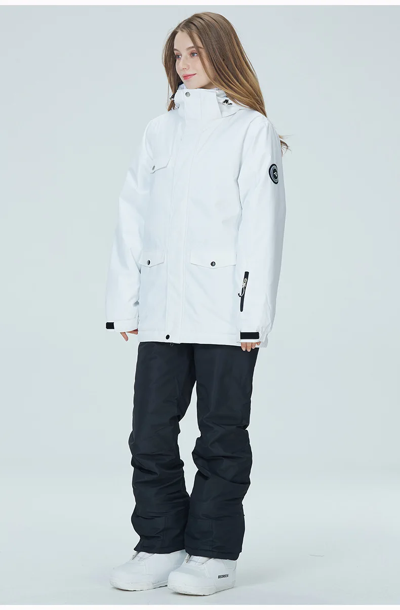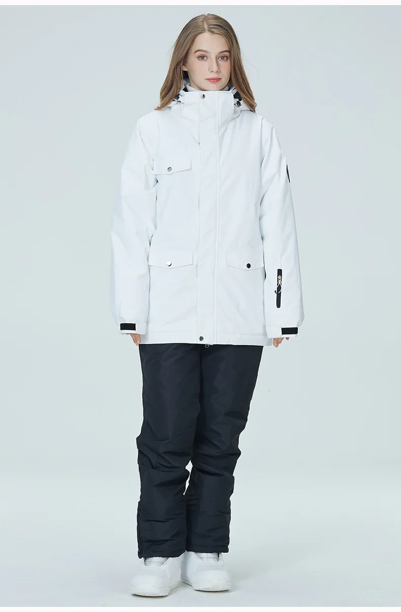 10K Pure White Ski Suit for Women, Snowboard Clothing Sets, Waterproof Windproof Skiing Jacket Pants Snow Overalls Couple Winter