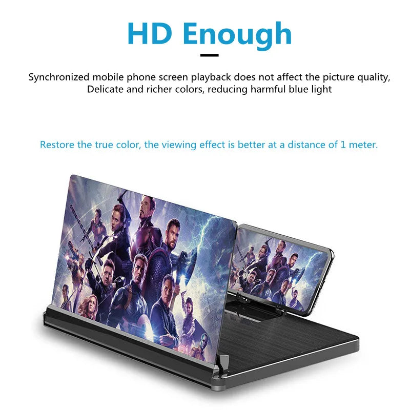 12 Inch Folding Mobile Phone Magnifying Glass HD Video Magnifying Glass 3D Mobile Phone Screen Magnifying Glass Desktop Bracket