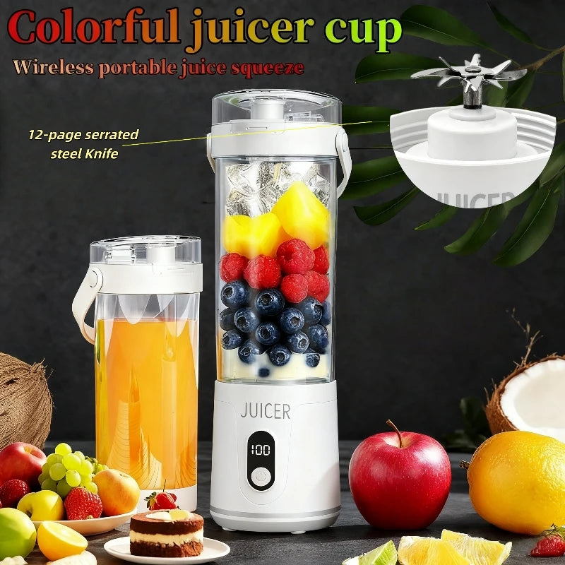 12Blades Portable Blender 2Cups for Travel Portable Electric Juicer Mixer Usb Charge Fresh Fruit Juice Personal Blender Smoothie