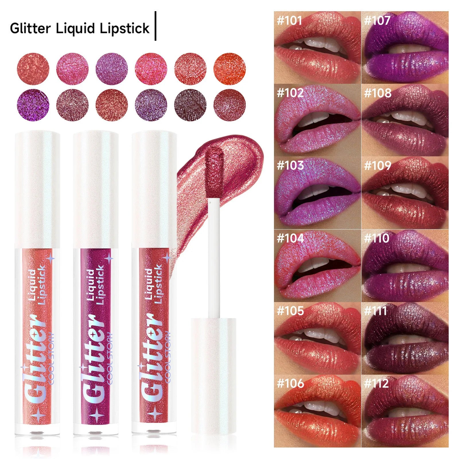 1PC Sexy Color Glitter Lipstick Flash Lasting Easy Color Diamond Lip Tint Shiny Metallic Lip Makeup Gifts for Women Cosmetics