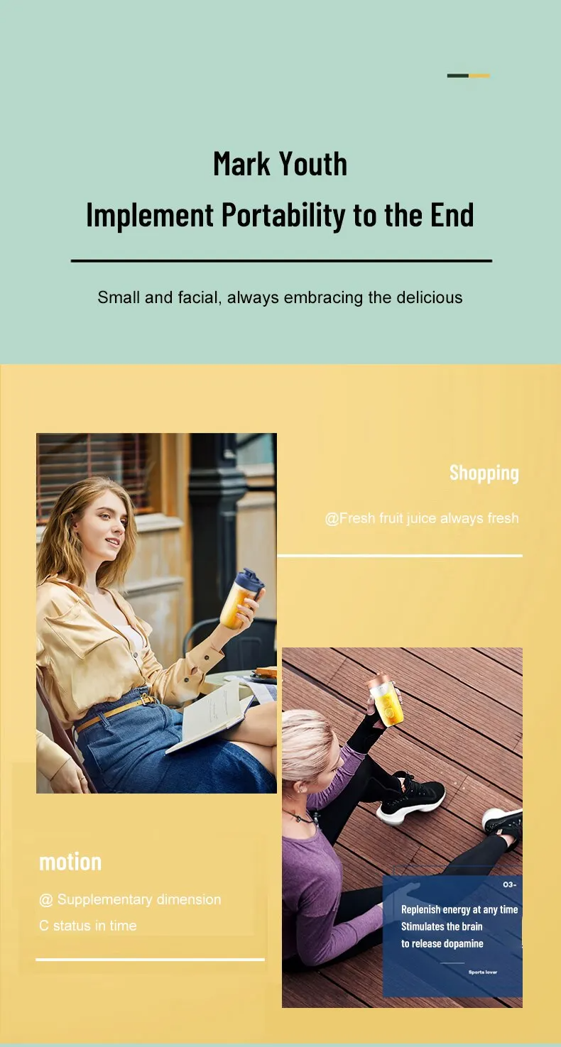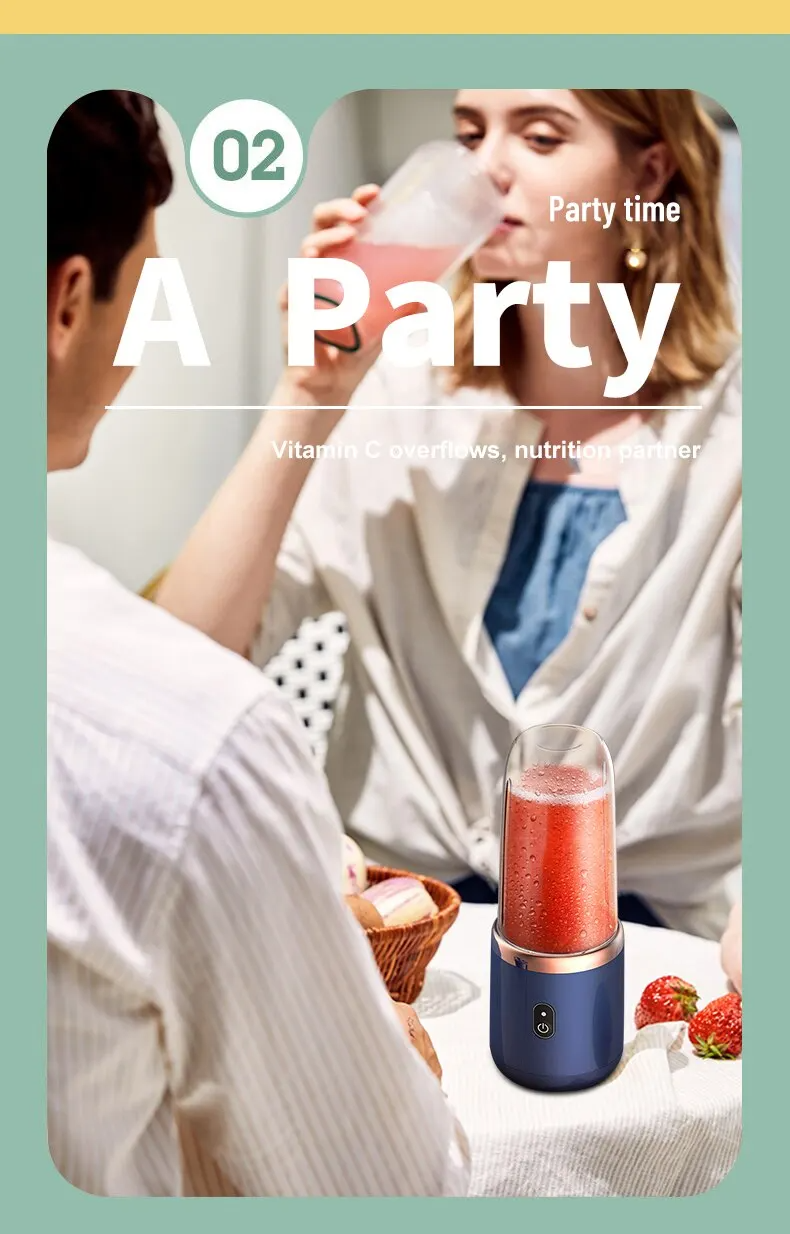 USB Rechargeable Portable Blender Dual Cup Maker Electric Juicer Mixer 6 Blades Travel Kitchen Home Breakfast Fresh Fruit Juice