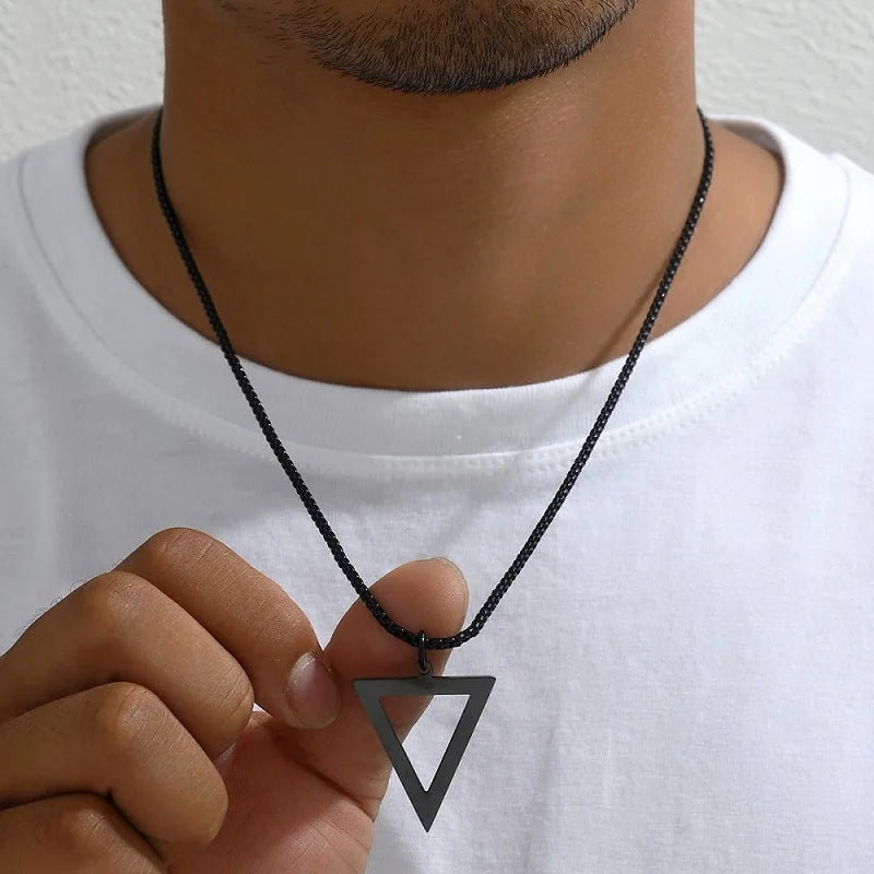 Vintage Fashion Men Jewellery Black Triangle Necklace For Men Stainless Steel Chain For Men Geometric Pendant Punk Party Jewelry