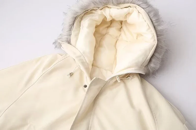 Winter New Women's Big Fur Snow Parka Simple and Versatile Vintage Cold Thicken Warm Fur Collar Hooded Cotton Padded Jacket