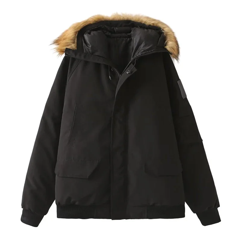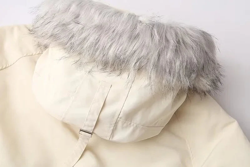 The parka features a thickened warm fur collar, providing extra warmth and protection against harsh winter conditions.