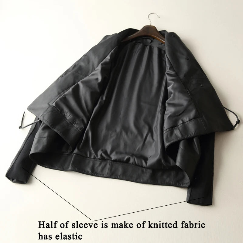 Women's Clothing Great Texture Women Loose Casual Genuine Leather Jacket Female Imported Frosted Sheepskin Drawstring Waist Coat