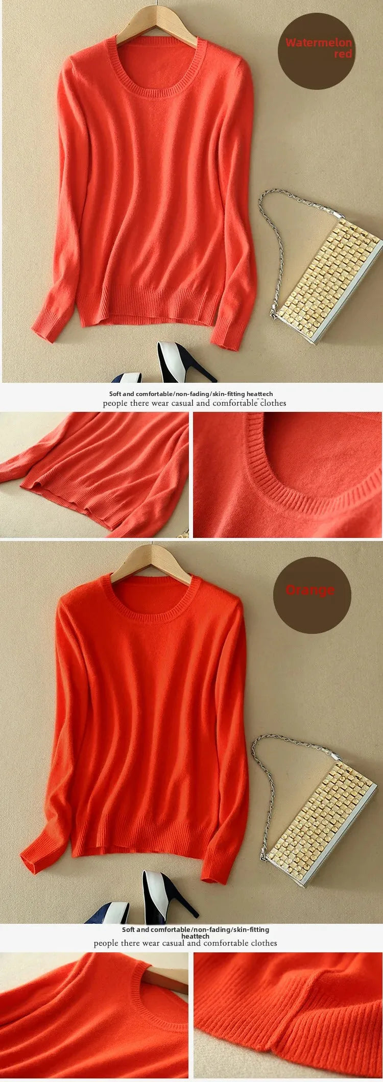 Women's Knitted Sweater round Neck Slim Fit Short Style Large Size Overhead Base Shirt Autumn Winter New Arrival Solid Color