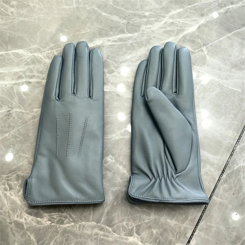 Women's Ladies 100% Real Leather Sheep skin Elegant Winter Warm Thick Lining White Pink Colorful Cute Outdoor Short Gloves