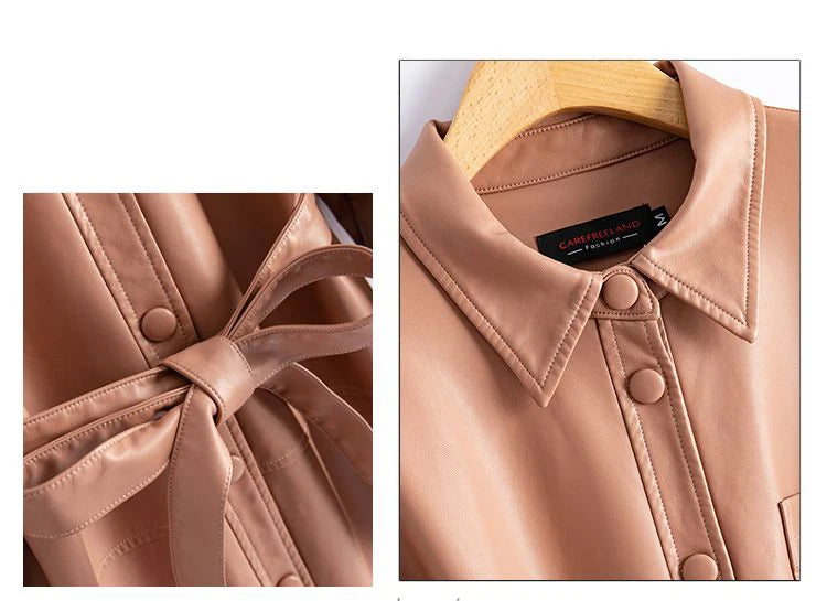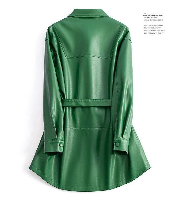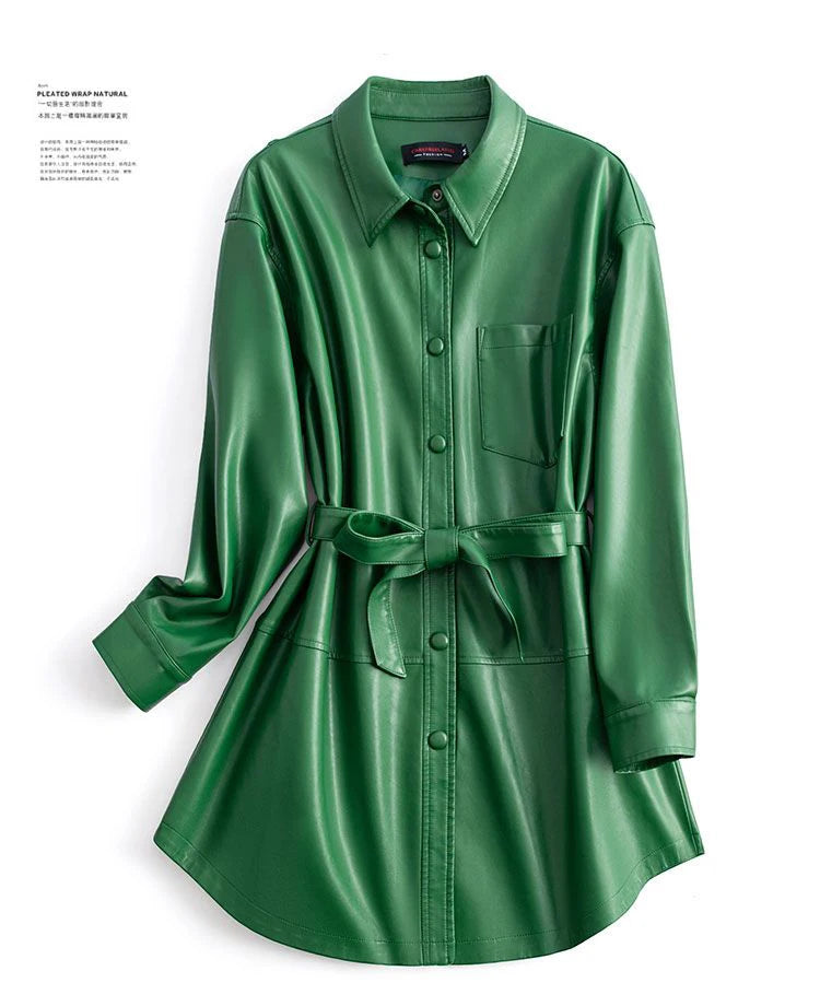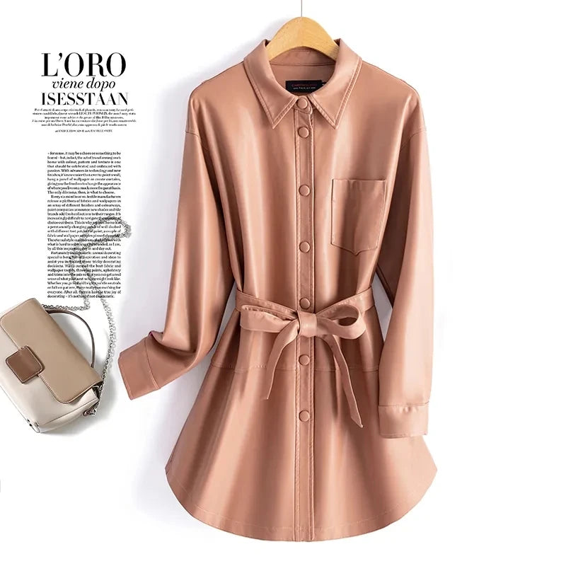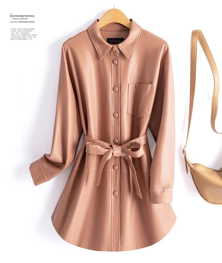 Women's Sheepskin Coat 2024 Autumn New Real Split Sheep Leather Ladies Mid-length Single-Breasted Belt Casual Jacket Outwear