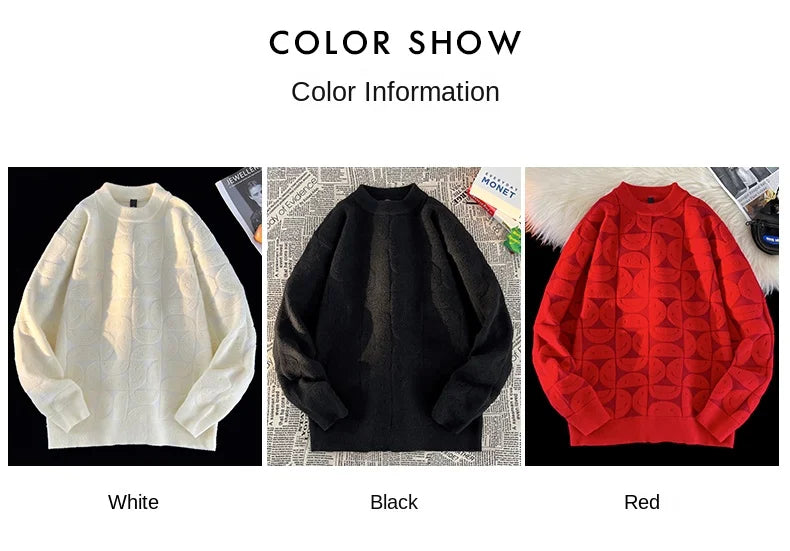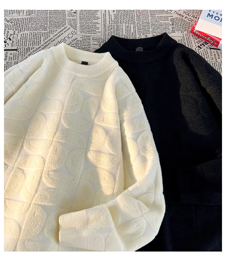 Wool Solid Sweater Long Sleeve Round Neck Fashion Knitted Pullover Coat Autumn Sweatshirt Warm Casual Men Thick New Jacket Tops