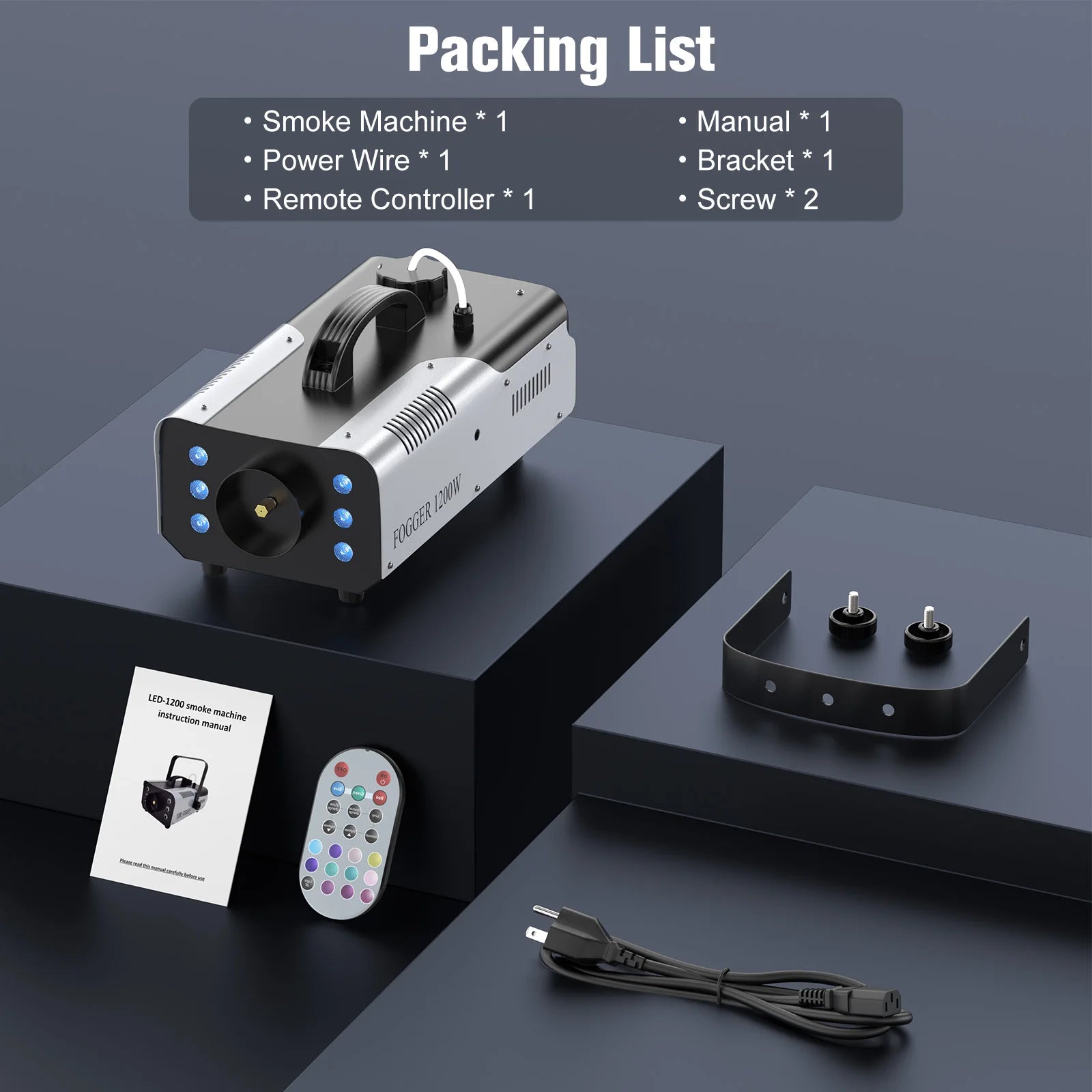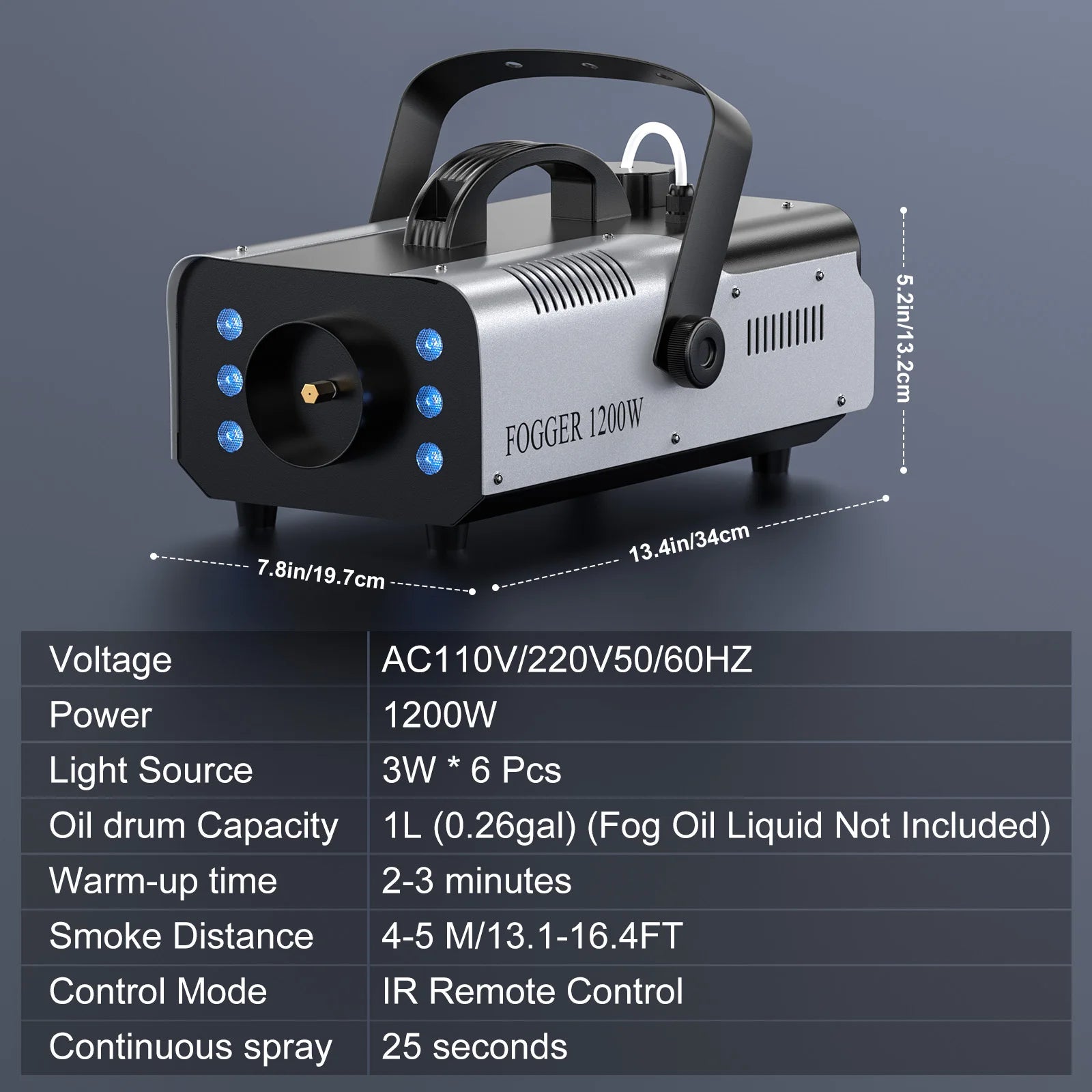Yiflamefly 2Pcs 1200W Smoke Machine with RGB 6LEDs Lighting for Theater Professional Stage Home Entertainment Halloween Party