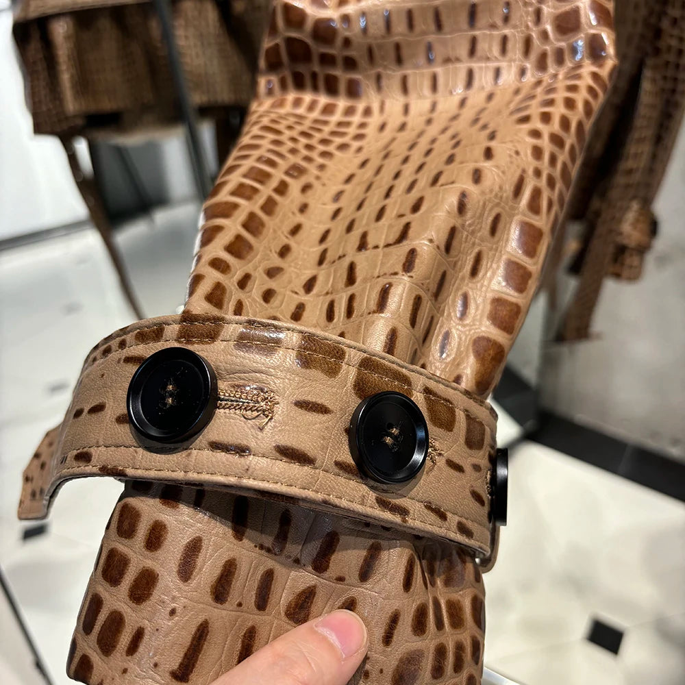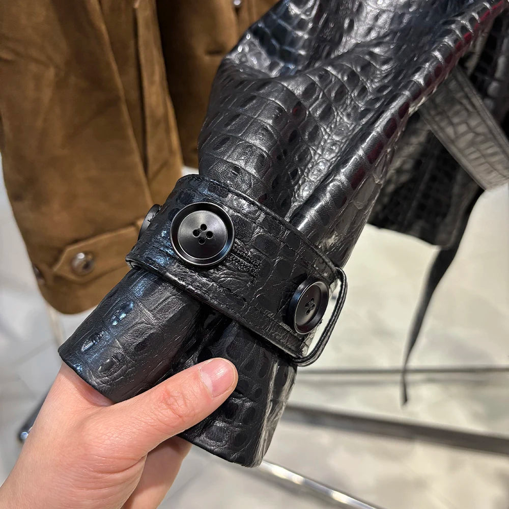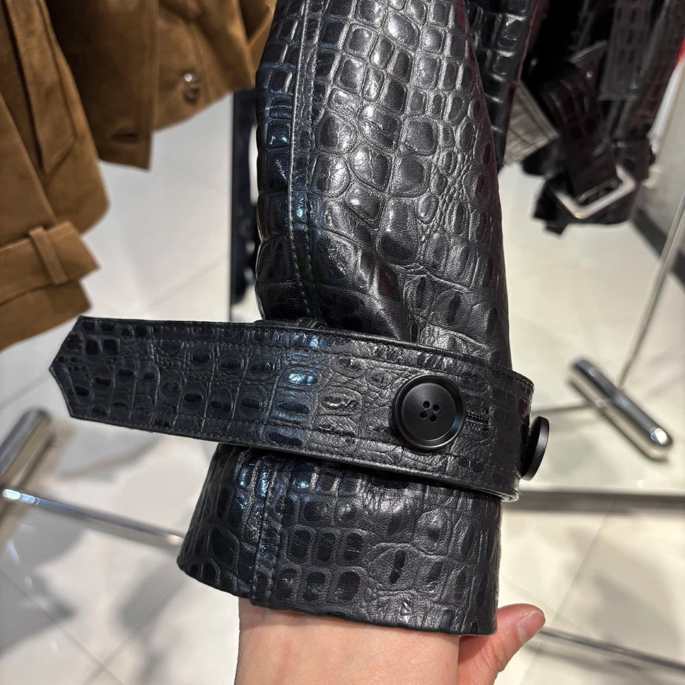 YOLOAgain Double Breasted Croc Pattern Leather Jacket Women 2023 Autumn New Genuine Leather Jacket Ladies