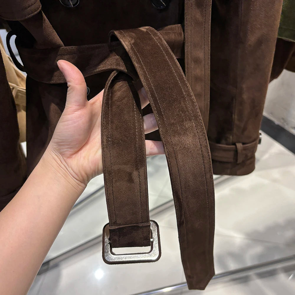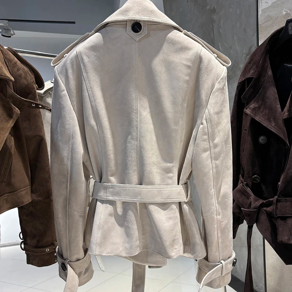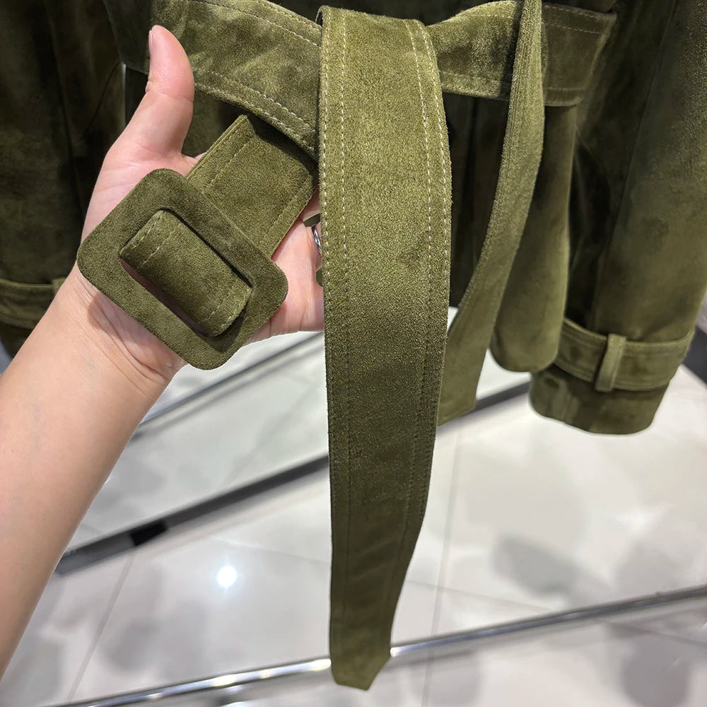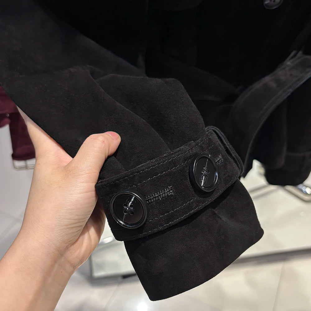 YOLOAgain Double Breasted Croc Pattern Leather Jacket Women 2023 Autumn New Genuine Leather Jacket Ladies