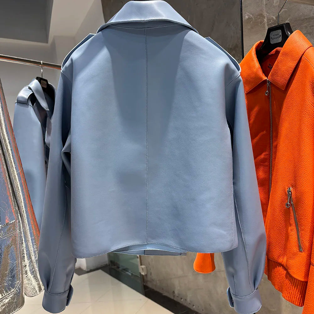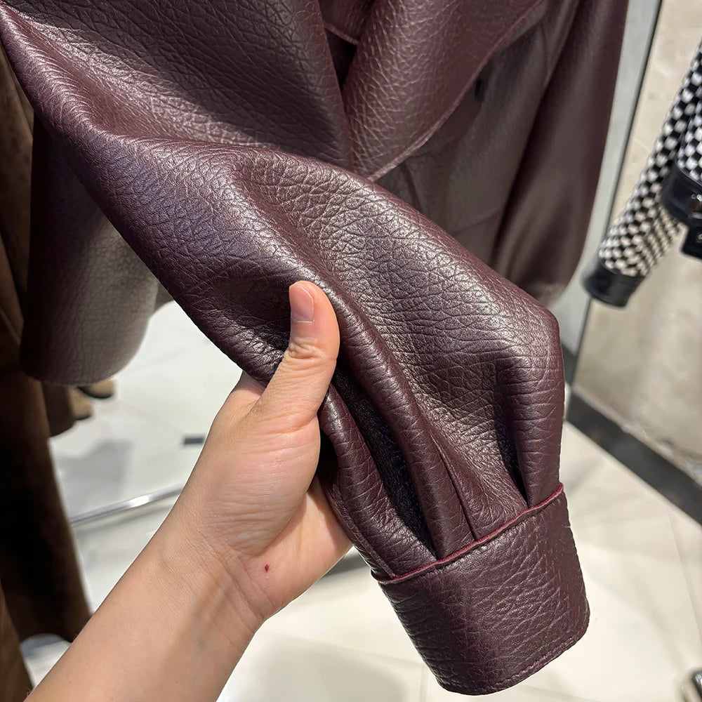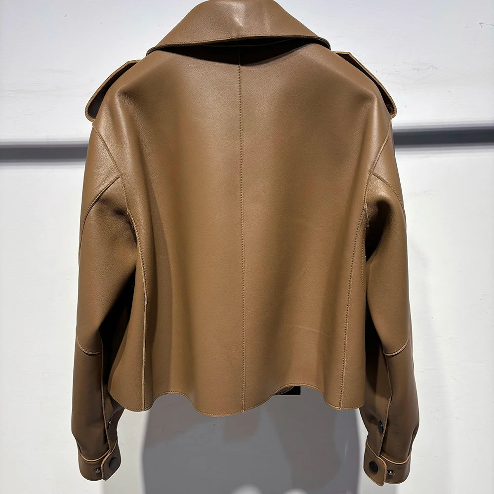 YOLOAgain Oversized Real Leather Jacket Women Sheepskin Coat