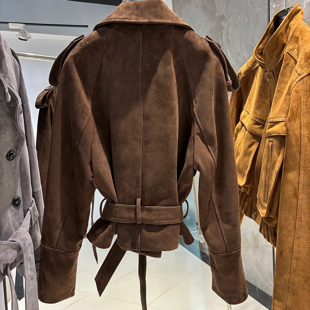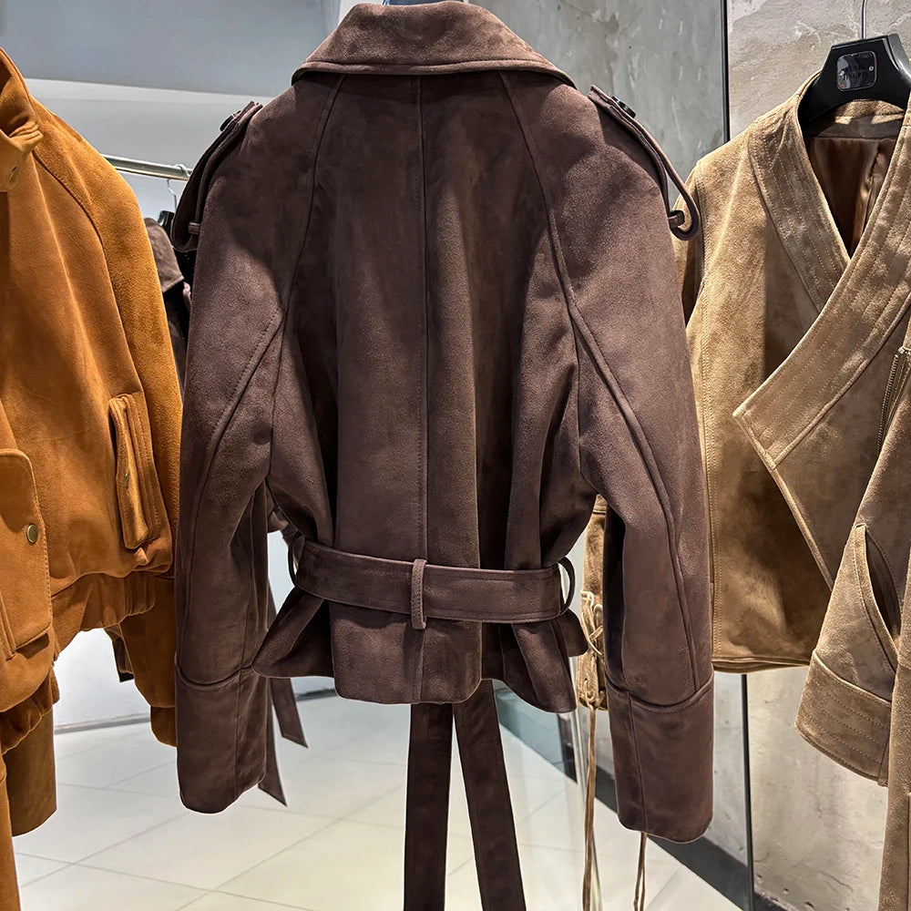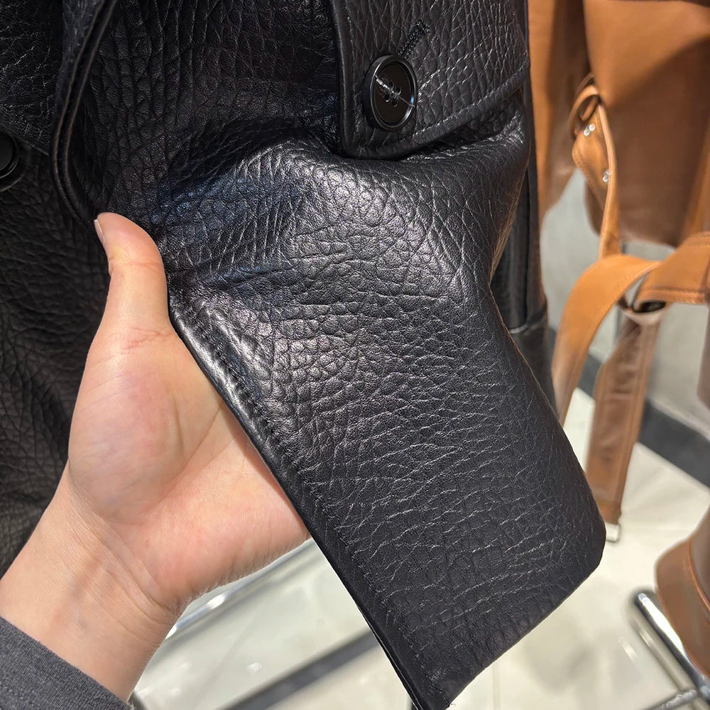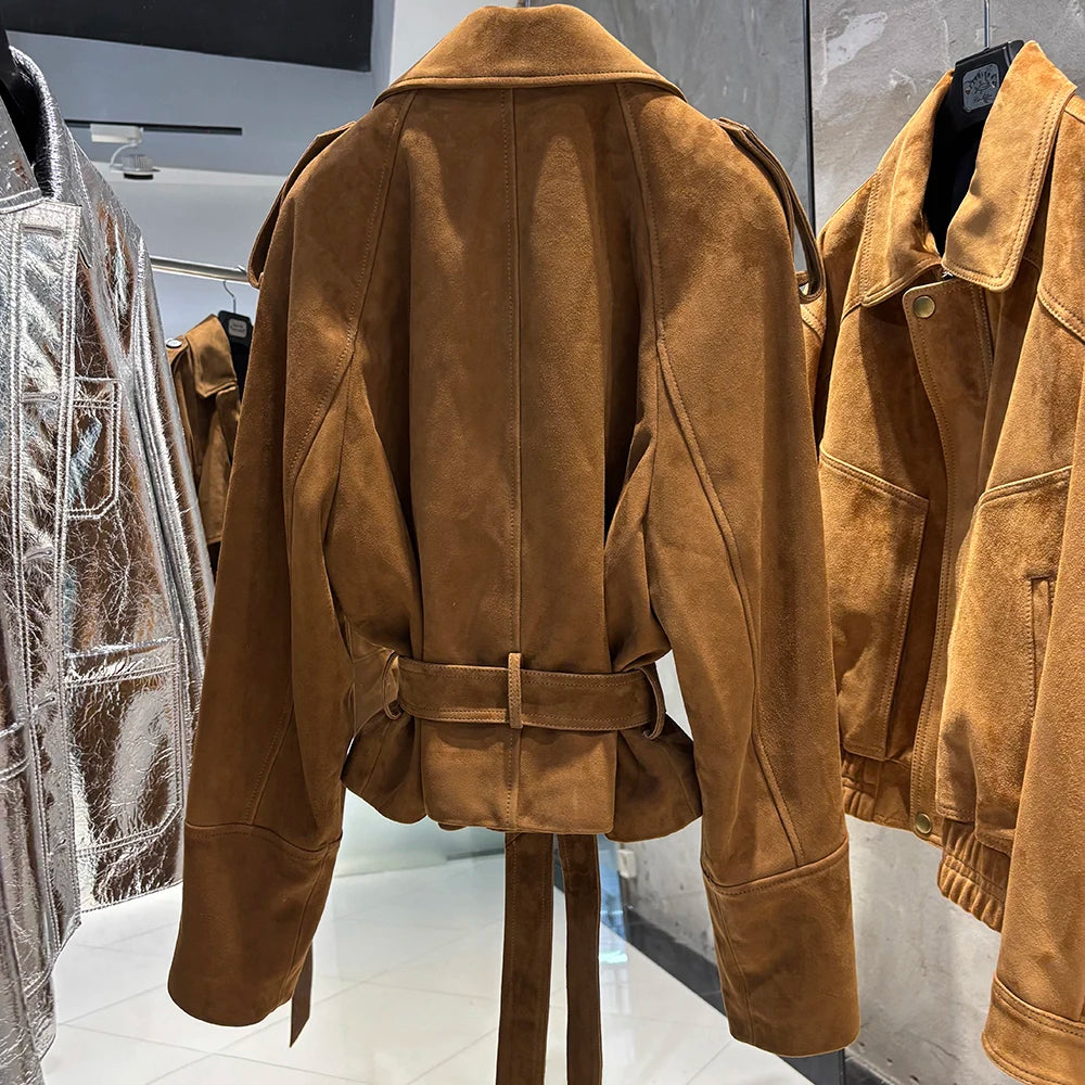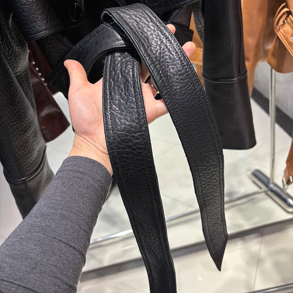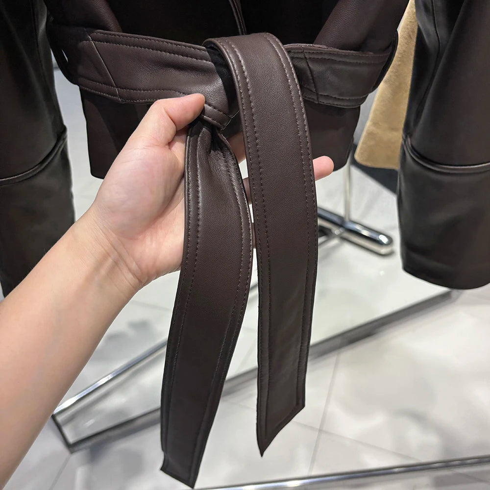 YOLOAgain Real Leather Jacket Women Burgundy Grain Leather Jacket With Belt